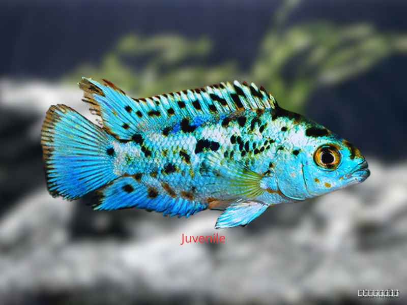 Breeding Jack Dempsey cichlids is considered moderately difficult, with the primary challenge being the management of their heightened aggression. The most successful approach is to raise a group of juveniles together and allow a pair to form naturally, as introducing an unfamiliar adult male and female often results in severe conflict. Once a pair has bonded, they should ideally be moved to a dedicated breeding aquarium. Sexual dimorphism is apparent in mature specimens; males are typically larger, exhibit more vibrant coloration, and develop longer, more pointed extensions on their dorsal and anal fins. Females are generally smaller and have a rounder body shape, which becomes more pronounced when they are carrying eggs.