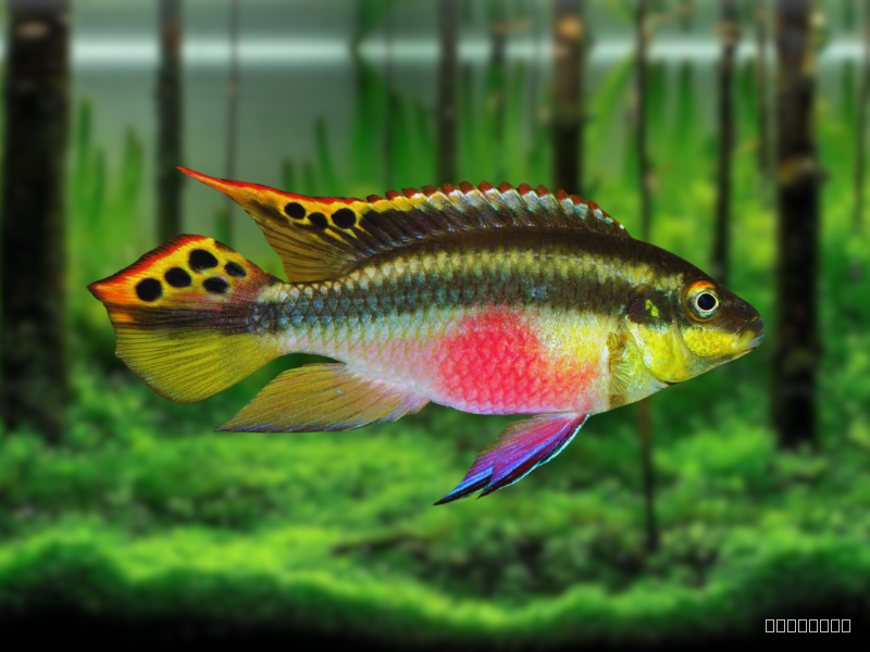 七彩凤凰(Kribensis)是一种色彩鲜艳、体格强健的非洲矮慈鲷,以其迷人的个性和相对温和的性情而闻名,是一个极佳的选择。这种鱼原产于非洲大陆,因其耐受性强和适应能力好,对于水族新手来说是一个绝佳的选择。它通常在鱼缸的底层和中层活动,在那里可以看到它探索周围的环境。虽然通常被认为是良好的混养鱼种,但它也可能变得具有领地意识,尤其是在建立了自己的地盘之后。最好将它们以配对的形式饲养,这样往往能展现出它们最有趣的行为。这个物种是杂食性的,不挑食,很乐意接受各种常见的水族饲料,包括薄片、颗粒,以及偶尔的特殊款待,如冷冻食品或蔬菜类食物。每日一次的喂食计划足以让它们保持健康和活力。它们的饲养被认为是简单直接的,且其相对较小的成年体型使它们适合中等大小、并配备有大量躲藏处的水族箱。凭借其可观的寿命,这些鱼可以成为家庭水族箱中一个长期、迷人的成员,让人们得以一窥慈鲷复杂的社会生活,而无需应对其更大型、更具攻击性亲戚的饲养要求。